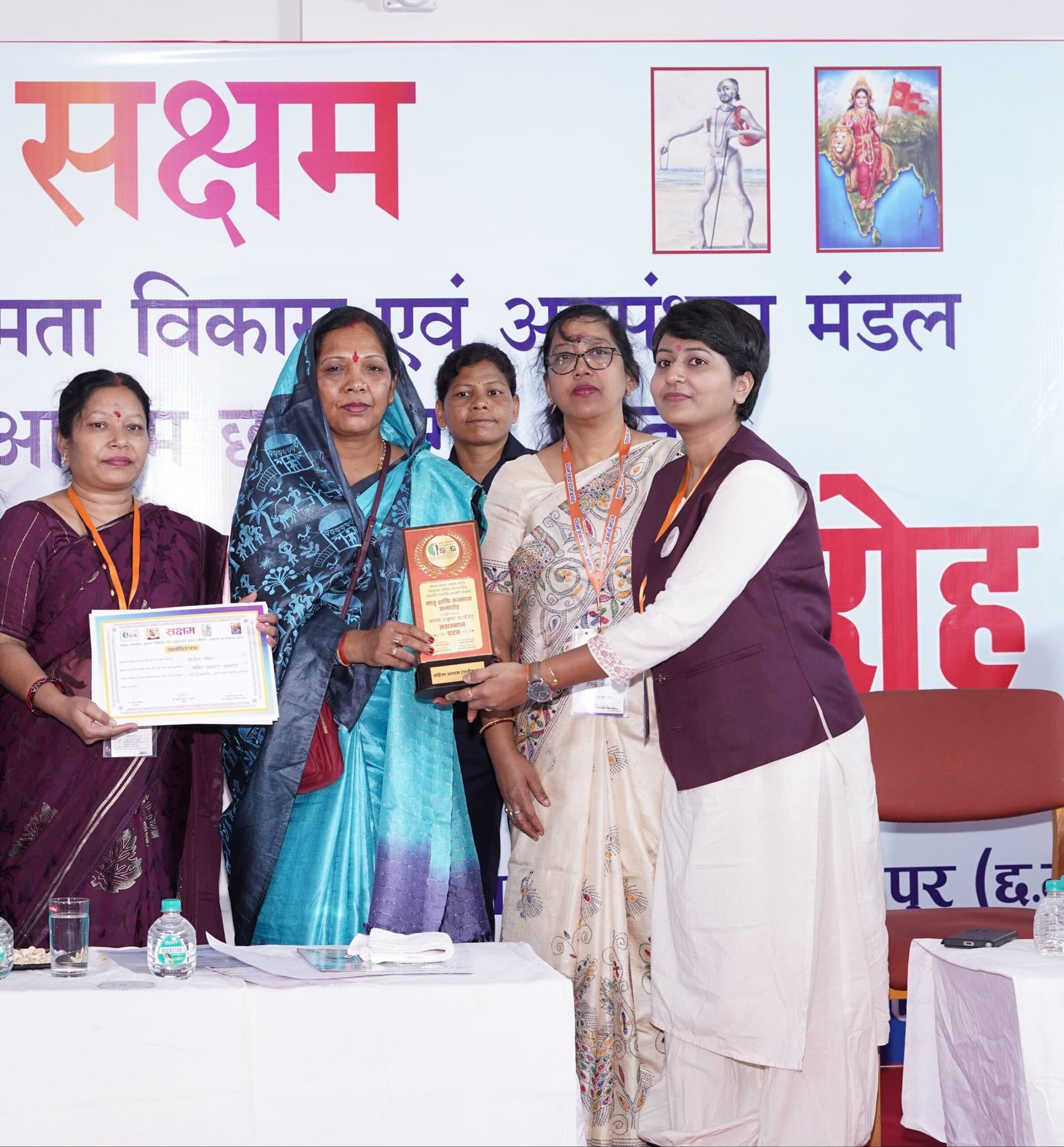 दिव्यांगों के सर्वांगीण विकास को समर्पित राष्ट्रीय संगठन ” सक्षम – समदृष्टि, क्षमताविकास एवं अनुसंधान मण्डल” अंतर्गत महिला आयाम छत्तीसगढ़ स्तर पर दिव्यांग महिला और दिव्यांगजनों के लिए कार्य करने वाली महिलाओं के लिए महिला सम्मान समारोह का आयोजन रायपुर के निकट ग्राम सेमरिया स्थित अविनाश गार्डन सिटी में ” कोपलवाणी श्रवण बाधित आवासीय विद्यालय” में किया गया।दिव्यांगता को अपनी कमजोरी नहीं, बल्कि ताकत बनाकर जीवन में आने वाली चुनौतियों का सामना करते हुए निरंतर आगे बढ़ रही प्रेरणास्त्रोत अर्चना बघेल जो कि बलौदाबाजार जिले के कृषि विभाग में सहायक सांख्यिकीय अधिकारी के पद पर पदस्थ है और 90% अस्थिबाधित दिव्यांग है। उनको छ. ग. महिला आयाम सक्षम द्वारा आयोजित सम्मान समारोह में मोमेंटो और प्रशस्ति पत्र द्वारा सम्मानित किया गया। अपने दृढ़ संकल्प, आत्मविश्वास और सकारात्मक सोच के बल पर अर्चना ने न केवल स्वयं को सशक्त बनाया है बल्कि अन्य दिव्यांगजनों को सशक्त, शिक्षित, आत्मनिर्भर और समाज के मुख्य धारा में जुड़ कर जीवन में आगे बढ़ने के लिए प्रेरित किया है।